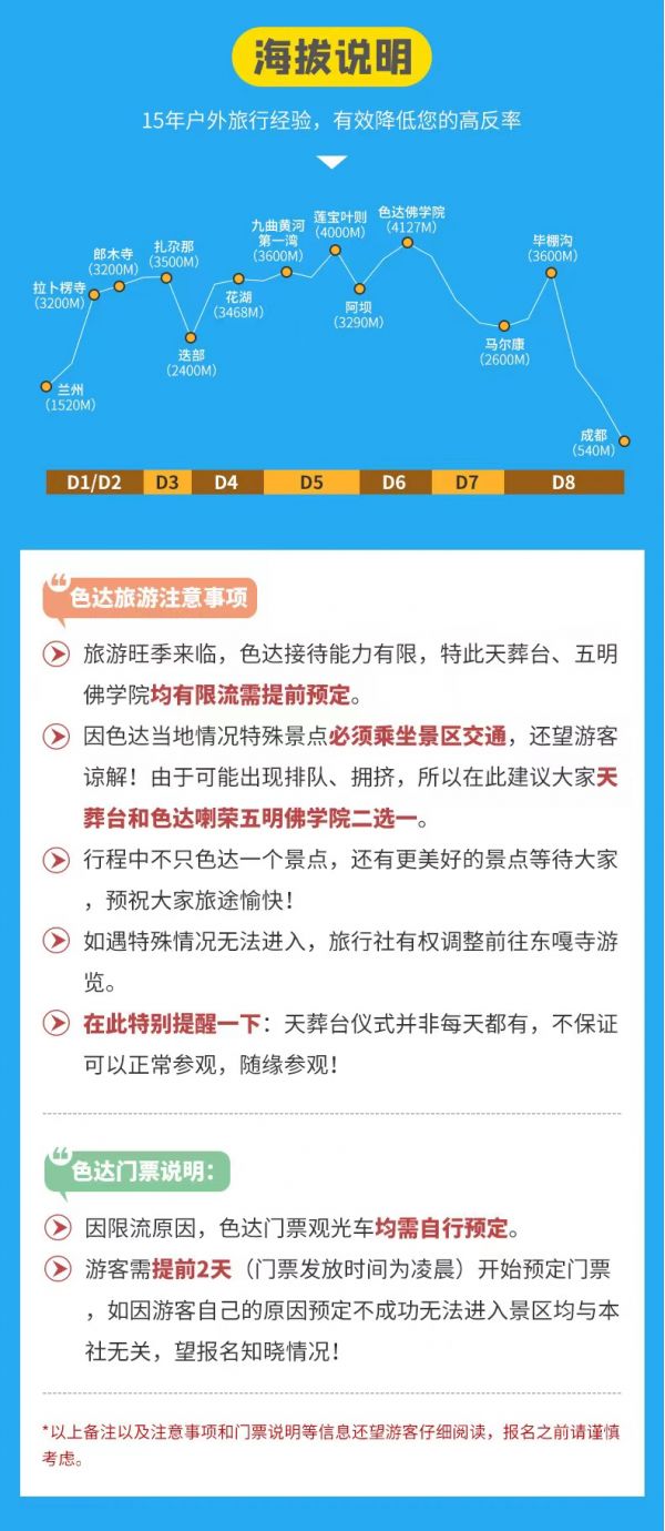 (8)旅游旺季來臨,色達(dá)接待能力有限,特此天葬臺、五明佛學(xué)院均有限流需提前預(yù)定。