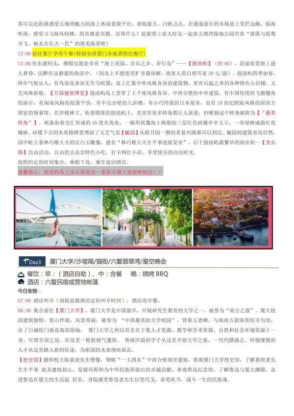 廈門-星空演出雙飛5日游 聊城發(fā)團 純玩 無購物 廈門鼓浪嶼 帆船出海廈門大學 星空演唱會六鰲翡翠灣 環(huán)島路曾厝垵 科技館 八市網紅植物園 ...... 發(fā)團時間 20230621-20230625 20230628-20230702 價格 4190 報名電話 0635 8681234