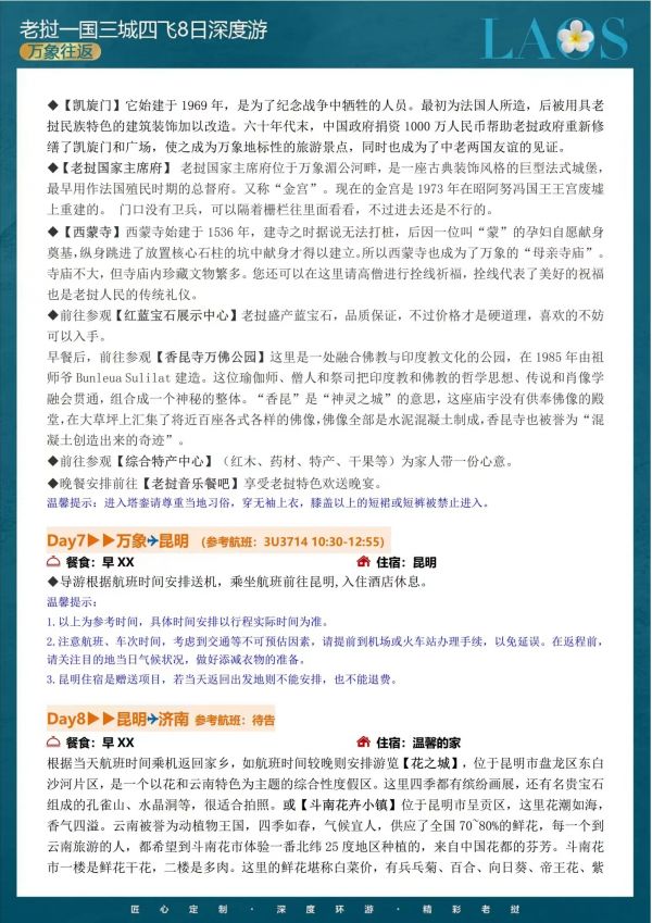 老撾四飛8日游 聊城發(fā)團(tuán) 純玩 無購(gòu)物 大皇宮 光西瀑布 坦江溶洞 藍(lán)色瀉湖 凱旋門 價(jià)格 4380 4680 報(bào)名電話 0635 8681234