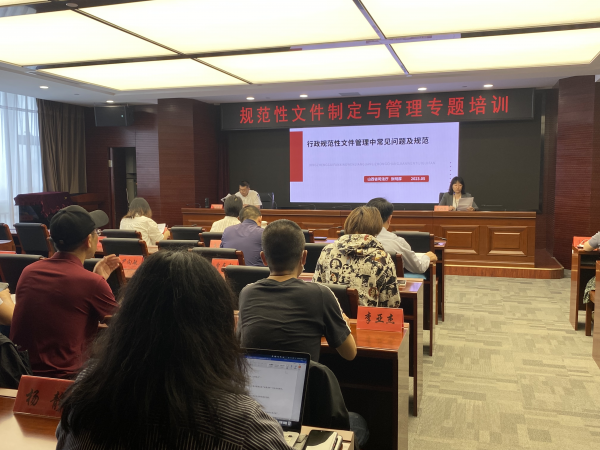 張明厚處長培訓圍繞規(guī)范性文件制定和審查各環(huán)節(jié)中常見問題進行了深入講解,結合具體案例進行分析,加深了大家對規(guī)范性文件的認識,對工作中容易出現(xiàn)的問題做了進一步強調(diào)。