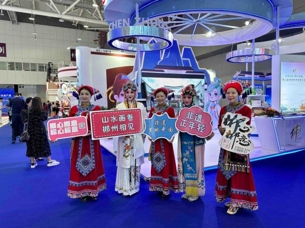 緊鄰湖南展館的郴州展館以郴州文旅資源為主打,設置郴州文旅資源展區(qū),以燈箱廣告形式展示天下莽山、溫泉之都、碧水丹霞等8張名片。展區(qū)內還設置了“郴品郴味”地方美食特產(chǎn)展區(qū)和“郴心郴意”文創(chuàng)非遺展區(qū),推介郴州美食,展示大布江拼布繡、湘南木雕、桂陽剪紙等非遺項目及文創(chuàng)產(chǎn)品。