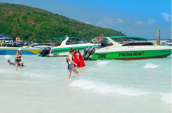 清澈,礁石、小魚、海蜇等 等盡收眼底;水上娛樂項目繁多,游客可自費選擇新鮮刺激的海上降落傘項目、體驗潛水等項目。金沙島主要海灘有達元海灘、通朗海灘、桑灣海灘、天海灘、薩美海灘以及象牙灣。其中中國隨團游客主要前往達元海灘,你既可享受在清澈湛藍的水游泳,也可以享受香蕉船、摩托艇等各種水上活動;天海灘因為其寧靜休閑深得泰國當?shù)鼐用竦南矏郏糠曛苣┚蜁泻芏嗵﹪彝е揖斓竭@里;薩美海灘是另外一個比較長的 海灘,這里神的歐洲游客的喜歡,在這里經(jīng)常可以看到金發(fā)女郎穿著性感的比基尼泳裝、涂抹一身防曬霜或是橄欖油,在沙灘上鋪一條大浴巾,毫無顧忌地享受日光浴;而象牙灣由于人跡罕至,所以成了好多情侶戀人的最佳選擇。金沙島因為其優(yōu)美的島嶼風光,海灘風光已經(jīng)成為泰國人以及外國游客來到芭提雅旅游的一個必經(jīng)之地。