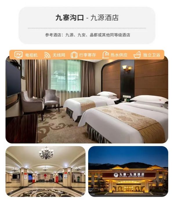九寨溝口:九源酒店、九安賓館、晶都或其他同級(jí)別