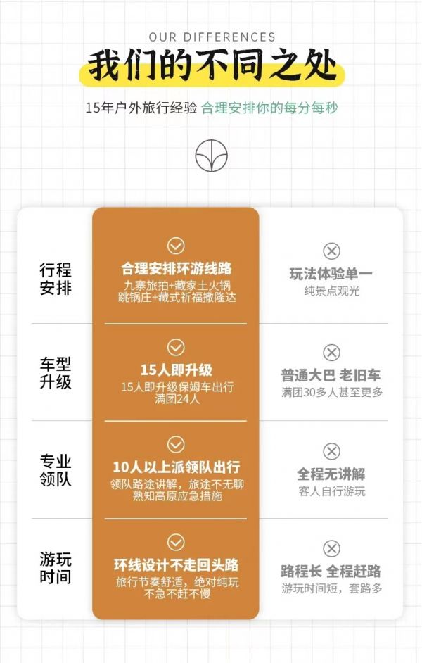 請對應使用我方玩聚九寨環(huán)線6日行程,因使用其它行程造成的投訴,責任自負;請仔細閱讀以上行程文檔,同意并保證遵守我方安排,以免為您帶來不必要的麻煩;如產(chǎn)生合同糾紛或人身意外事故,按《中華人民共和國合同法》、《道路交通法》、《保險賠償條例》裁定;本行程作為旅游合同附頁與旅游合同同等法律效力。