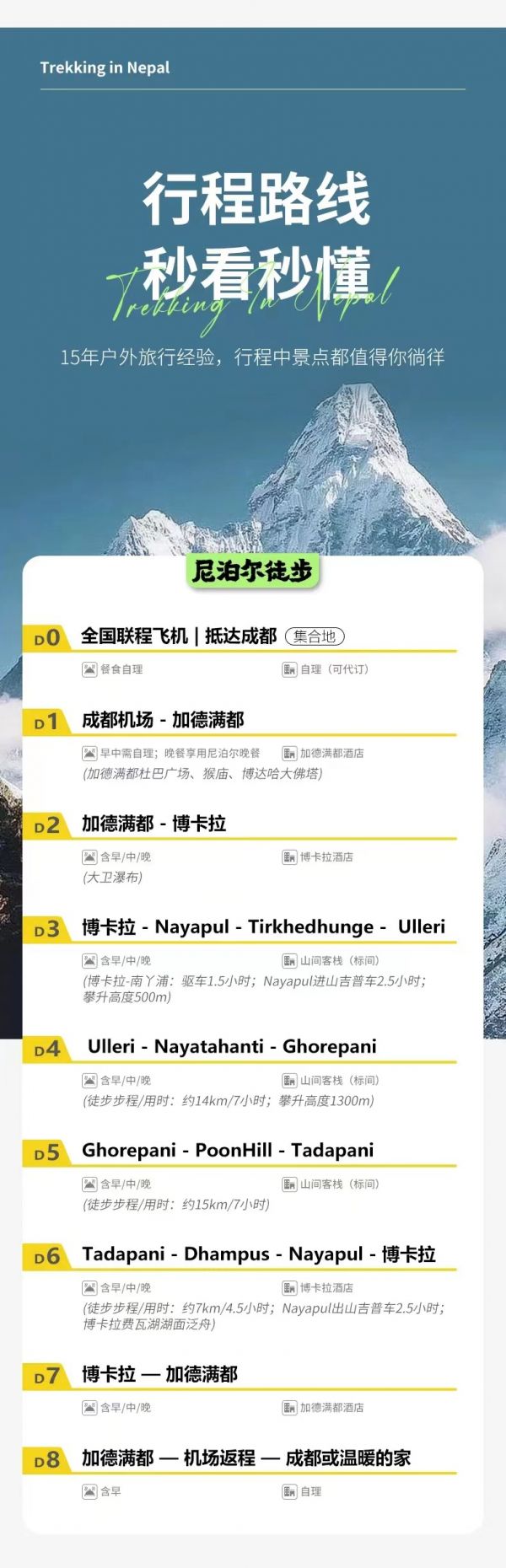 用餐:早中需自理;晚餐尼泊爾特色餐