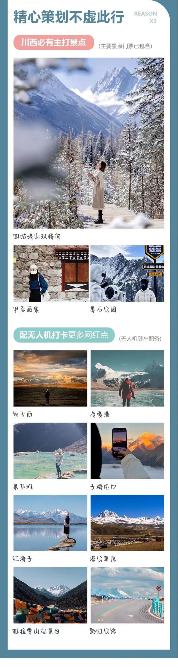 紅海子+魚子西+月亮湖+冷嘎措+墨石公園+雅拉雪山觀景臺(tái)+甲居藏寨+四姑娘山+雙橋溝?