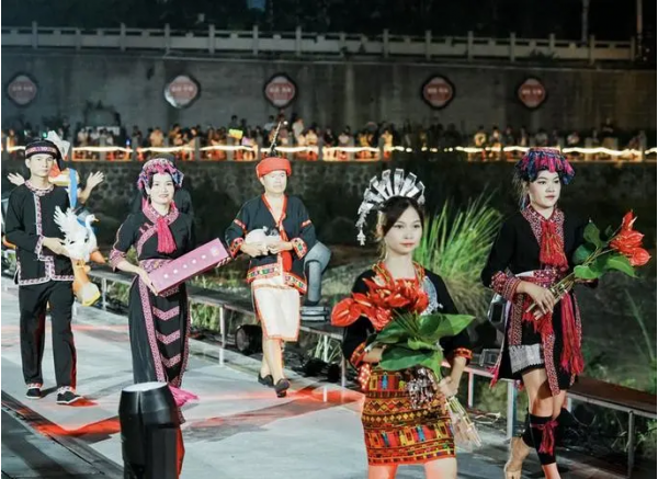 11月11日晚,海南省五指山市民族時(shí)裝“村秀”在五指山通什鎮(zhèn)小島公園上演,向市民游客展示了五指山的農(nóng)耕文化、紅色文化、農(nóng)墾文化、黎族五大方言區(qū)傳統(tǒng)服飾、黎族傳統(tǒng)紡染織繡技藝等豐富的文化資源,呈現(xiàn)了五指山這座城市的獨(dú)特韻味。
