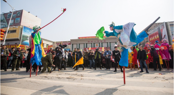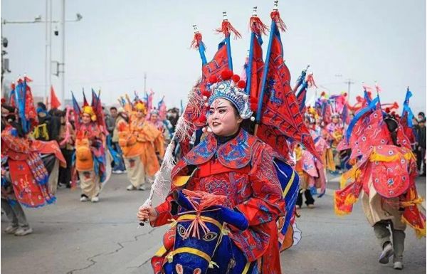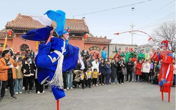 人們?yōu)楸苊饣馂?zāi),以這種方式祭祀火神,表達(dá)了勞動人民一種辟邪除災(zāi)、迎祥納福的美好愿望。“火神廟會”舉辦期間,到處人山人海,傳統(tǒng)節(jié)目有大集街高蹺、軍莊秧歌、背閣、抬閣、八卦秋、武術(shù)表演、竹馬、蓮花燈、火龍、花船等,男女演員盛裝上陣,從臉譜到服裝,無不體現(xiàn)了濃郁的傳統(tǒng)文化色彩。