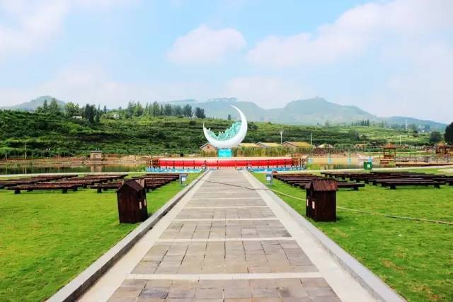 岱崮地貌核心區(qū)-崮園,偌大的留聲機哼唱著《彎彎的月亮》,與月亮灣遙相呼應。