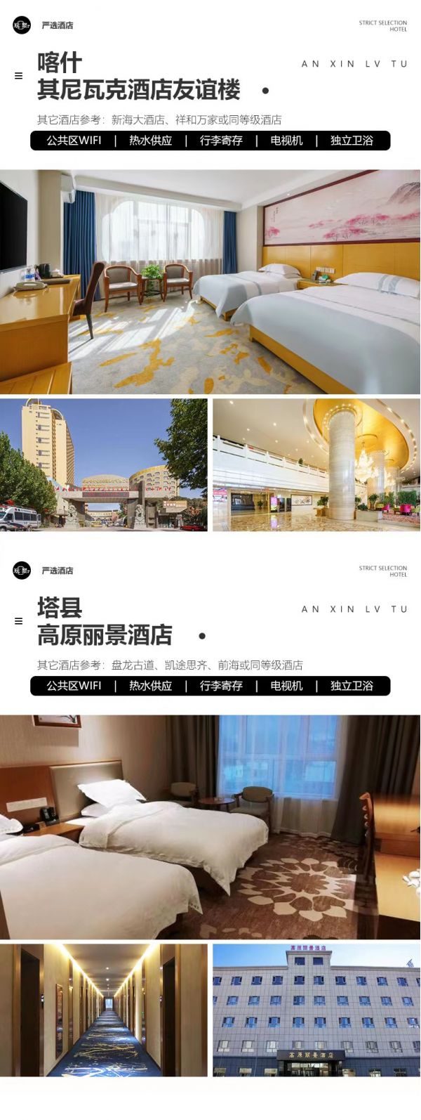 我們將于今天晚上20:30到達喀什,我們特意免費贈送一晚喀什酒店住宿,給您時間緩解旅途的疲憊,返程不匆忙。