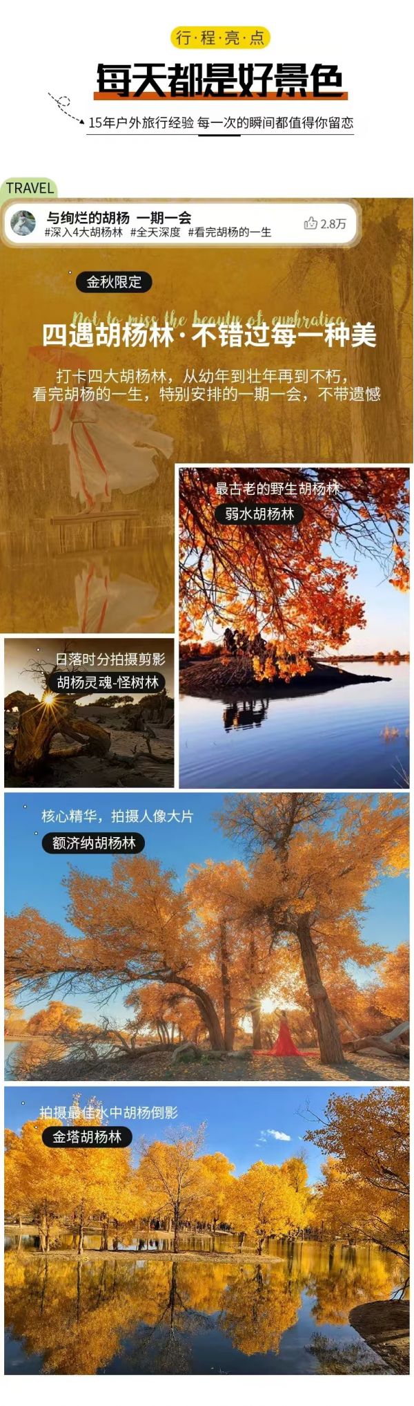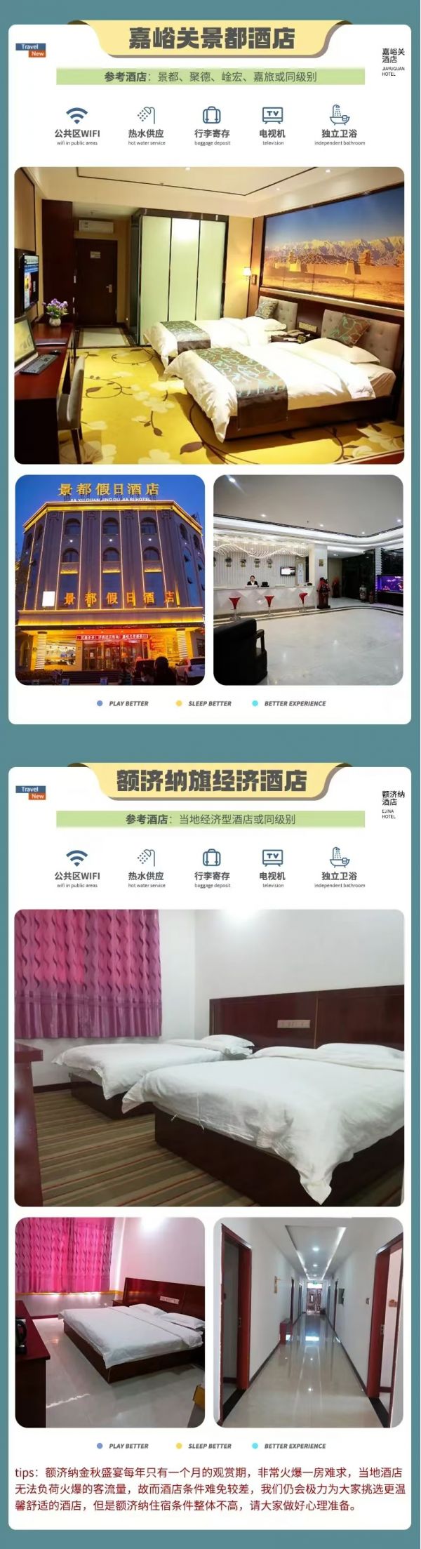 3. 額濟(jì)納金秋盛宴每年只有一個(gè)月的賞味期,全國(guó)各地的游客蜂擁而至,小鎮(zhèn)各項(xiàng)資源過載,當(dāng)?shù)夭粩嗤晟破渑涮踪Y源但基礎(chǔ)設(shè)置仍較薄弱,請(qǐng)大家以平常心對(duì)待。