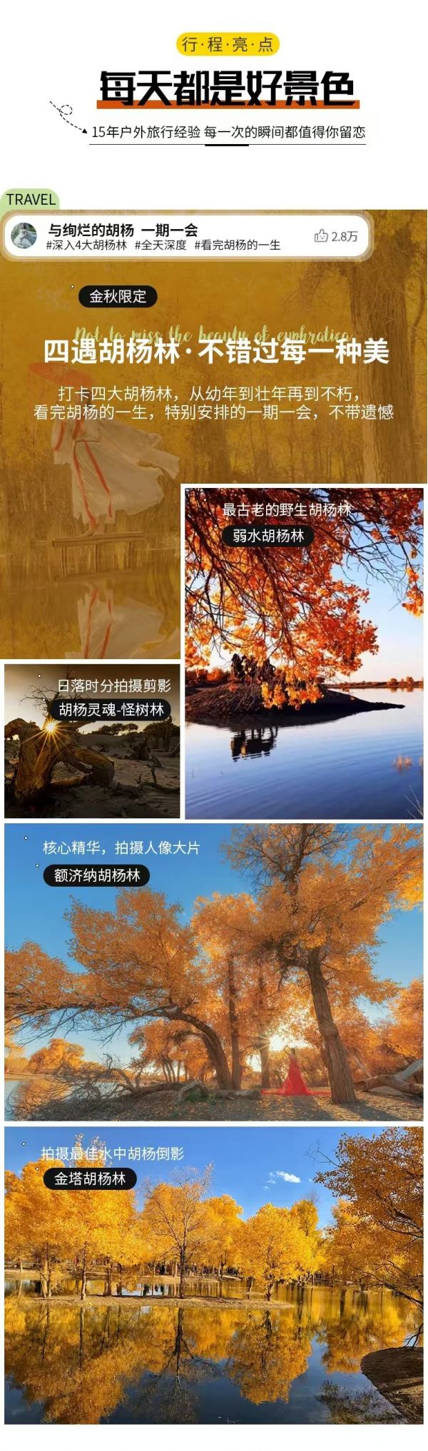 3. 額濟(jì)納金秋盛宴每年只有一個(gè)月的賞味期,全國各地的游客蜂擁而至,小鎮(zhèn)各項(xiàng)資源過載,當(dāng)?shù)夭粩嗤晟破渑涮踪Y源但基礎(chǔ)設(shè)置仍較薄弱,請(qǐng)大家以平常心對(duì)待。