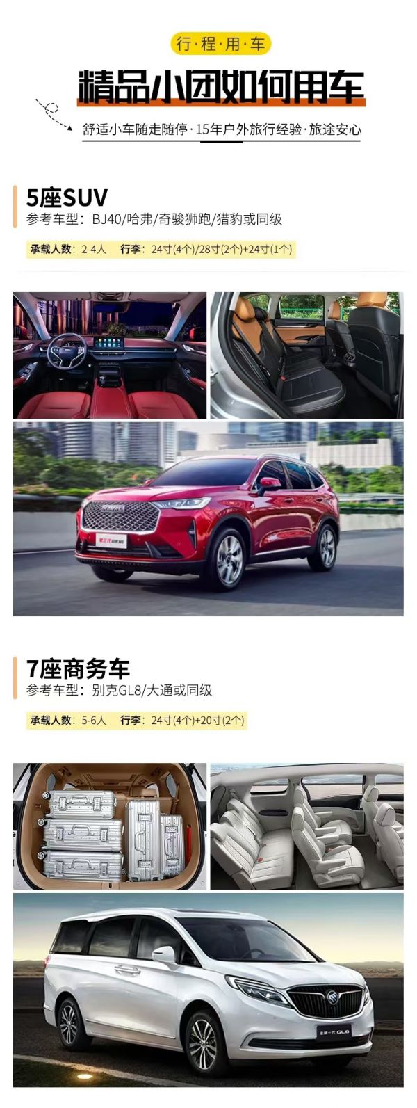 ● 服務(wù):由經(jīng)驗(yàn)豐富的司機(jī)提供向?qū)Х?wù),司機(jī)非導(dǎo)游,不進(jìn)景區(qū),敬請(qǐng)諒解。