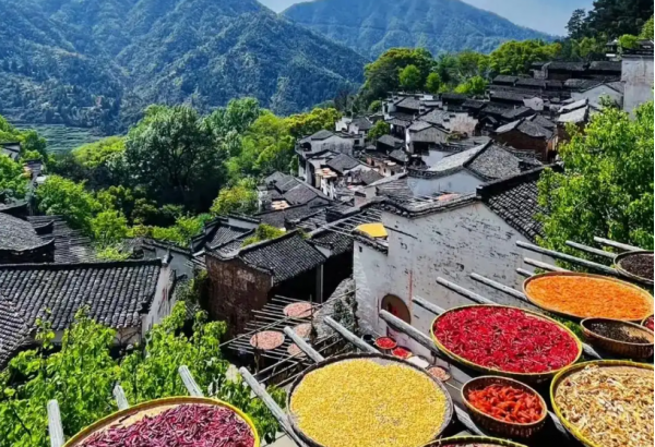 登上篁嶺的觀景臺,拍攝整個(gè)古村的全景,包括遠(yuǎn)處的山巒和梯田。可以利用不同的光線角度,如側(cè)光來突出建筑的立體感。還可以拍攝古村中的村民生活場景,如老人在門口曬太陽、婦女在溪邊浣洗等。