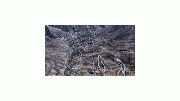 邦達(dá)的藏語為“雄鷹飛不出的草地”,這里曾是著名的“茶馬古道”必經(jīng)之地。由于地勢(shì)的原因,在邦達(dá)的業(yè)拉山(埡口海拔4658米),形成了著名的【怒江72道拐】,也稱“九十九道回頭彎”、業(yè)拉山“108拐”。從業(yè)拉山口,一直下到海拔不到3000米的怒江邊,高度直降近2000米。山路曲折盤旋,一彎又一彎,一圈又一圈,無限循環(huán),轉(zhuǎn)到后來你根本不可能記得它轉(zhuǎn)了多少圈。如此密集的回頭彎,被稱為川藏線上拐彎最多的路段,也是“中國(guó)十大險(xiǎn)峻山路”之一。