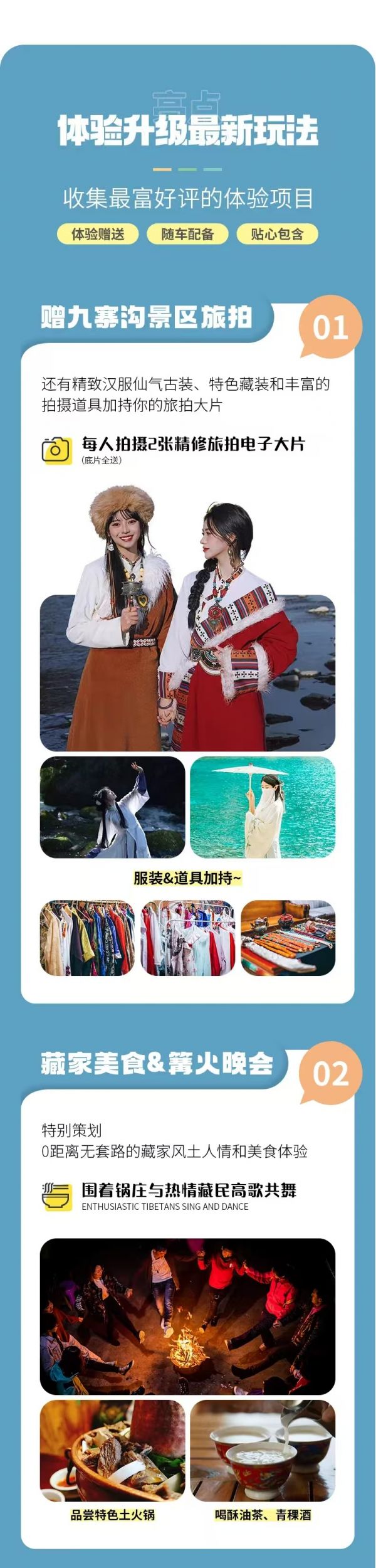 (5)走進藏家藏文化體驗由領隊/司機視實際情況靈活安排在D2或D3;如因九寨溝防疫政策規(guī)定,走進藏家暫停營業(yè),則晚餐調整為團餐,望您諒解。