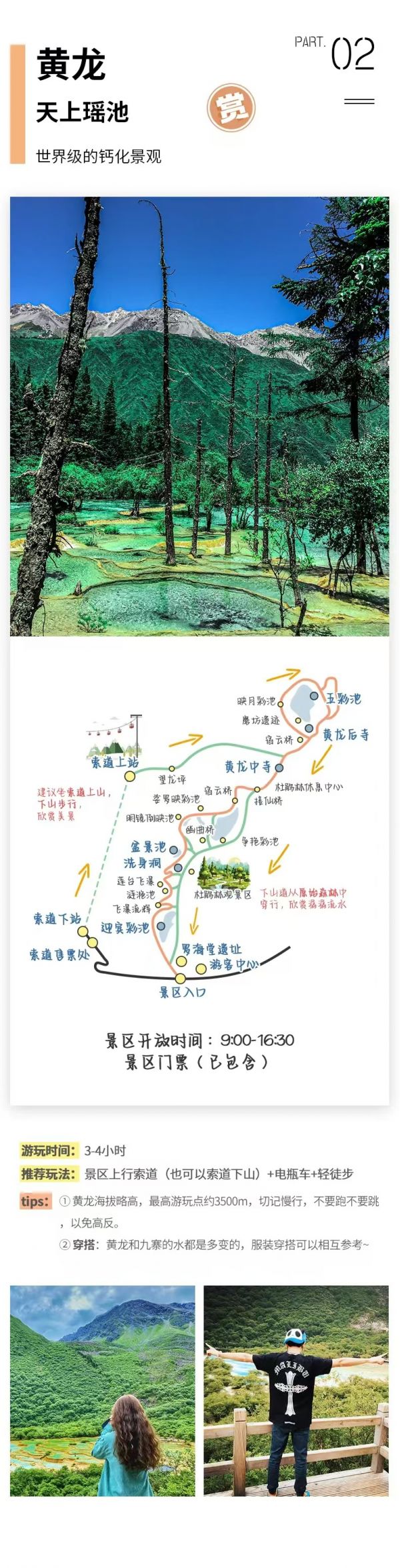 (2)特別提示:12月16日-3月31日期間黃龍索道停運,屆時需步行上下游覽黃龍景區(qū),敬請知曉。