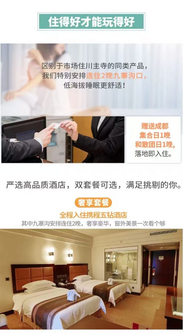 九寨溝(連住2晚):九宮賓館/潤(rùn)都國(guó)際溫泉酒店/保利新九寨賓館/星宇國(guó)際或等同級(jí)酒店