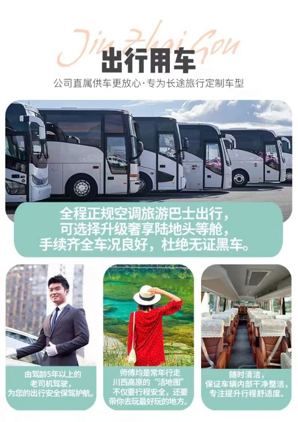 1、關(guān)于車輛交通:目前四川旅游市場(chǎng)8座以下車輛無(wú)法辦理旅游牌照,請(qǐng)游客知悉,以此理由提起的投訴我方拒不受理,望您諒解。