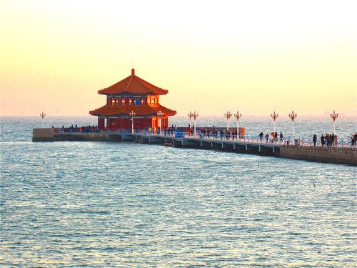 青島棧橋始建于清光緒十八年(1892年),是青島最早的軍事專(zhuān)用人工碼頭建筑,是青島的重要標(biāo)志性建筑物和著名風(fēng)景游覽點(diǎn) 。青島棧橋全長(zhǎng)440米,寬8米,鋼混結(jié)構(gòu)。橋南端筑半圓形防波堤,堤內(nèi)建有民族形式的兩層八角樓,名“回瀾閣”,游人佇立閣旁,欣賞層層巨浪涌來(lái),“飛閣回瀾”被譽(yù)為“青島十景”之一。