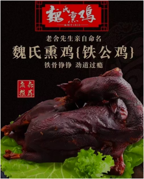 自此,魏氏熏雞代代相傳,歷經七代傳人,已有200多年的歷史。魏氏熏雞歷經七代傳承,不斷豐富和發(fā)展了餐飲文化,成為魯菜中的代表。其先后被評為1991年廣州商品交易會最佳地方名吃、1997年中國山東旅游博覽會優(yōu)秀旅游商品、2002年中國江北水城(聊城)文化旅游節(jié)指定產品等。2009年,魏氏熏雞被列入第二批山東省非物質文化遺產名錄。此外,魏氏熏雞還曾被老舍等著名作家品嘗并贊譽,被譽為“聊城鐵公雞”。