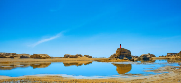 離開 315U 型公路繼續(xù)前行,就到了神奇的水上雅丹。這里原是干涸雅丹地貌,因地下水上升淹沒部分雅丹群,形成獨(dú)一無二的水上奇觀。湛藍(lán)湖水與形態(tài)各異的雅丹相互交融,宛如漂浮的城堡。有的雅丹像展翅雄鷹,有的像古老城堡,有的像靈動海豚,令人感嘆大自然的鬼斧神工。乘坐游船穿梭其中,微風(fēng)拂過,湖面漣漪陣陣,仿佛置身夢幻之境。這里的日出日落絕美,金色陽光灑下,水上雅丹一片金黃,美到令人陶醉。