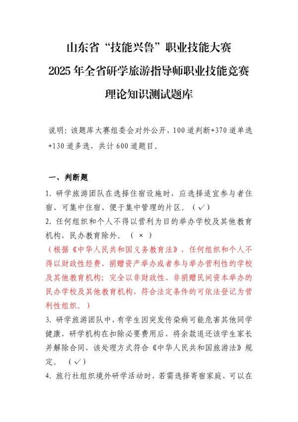 下列鏈接為”山東省“技能興魯”職業(yè)技能大賽 2025 年全省研學(xué)旅游指導(dǎo)師職業(yè)技能競賽理論知識測試題庫“