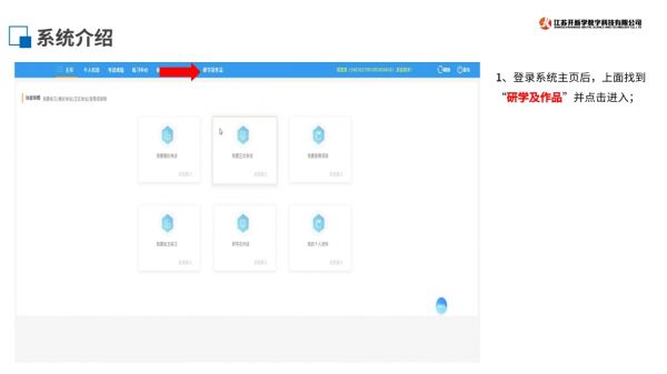 1.登陸系統(tǒng)-點(diǎn)擊“研學(xué)及作品”。