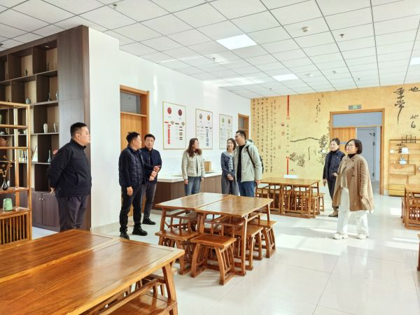 師生工作室創(chuàng)始人劉寶平熱情接待并與來訪嘉賓進行友好洽談,文旅學(xué)院教學(xué)科科長姜琳琳、辦公室主任劉輝、旅游服務(wù)中心主任張蕾及聊之旅旅行社董事長助理劉景磊陪同參觀。
