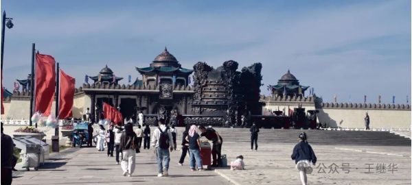 出了成吉思汗陵不遠(yuǎn),便是鄂爾多斯文化產(chǎn)業(yè)園。這座碩大的古建筑群,是“十二五”期間自治區(qū)鄂爾多斯市確定實(shí)施的重點(diǎn)文化產(chǎn)業(yè)項(xiàng)目,位于伊金霍洛旗,地處“蒙晉陜寧”四省交匯處,