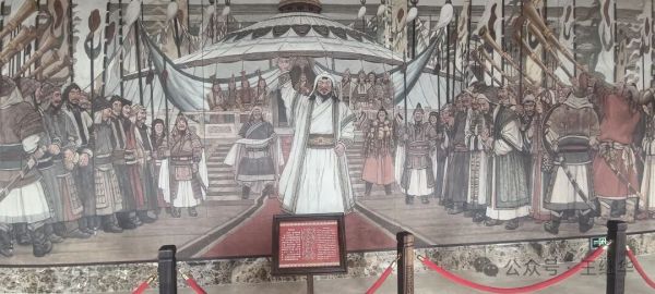 從蒙古包到成吉思汗陵,不過四分鐘車程。車剛停穩(wěn),仰頭便見“氣壯山河”石門劈開蒼穹,氣勢(shì)撼人。劉總摸著銅鑄的鐵馬金帳群雕感嘆:“你看這馬鬃,風(fēng)從哪個(gè)方向來,它就朝哪個(gè)方向揚(yáng)。”話音未落,一陣風(fēng)恰好掠過,雕像鎧甲上的浮塵簌簌掉落,恍惚間真有戰(zhàn)馬嘶鳴穿透時(shí)空,在耳畔回響。