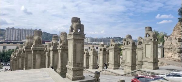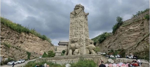 走出紀(jì)念區(qū),我們驅(qū)車(chē)10分鐘抵達(dá)石魂廣場(chǎng)。這里是“石雕之鄉(xiāng)”綏德的另一張名片,以?xún)勺?9.5米高的巨型石獅(赑屃馱負(fù))為核心,為中國(guó)最大石獅。