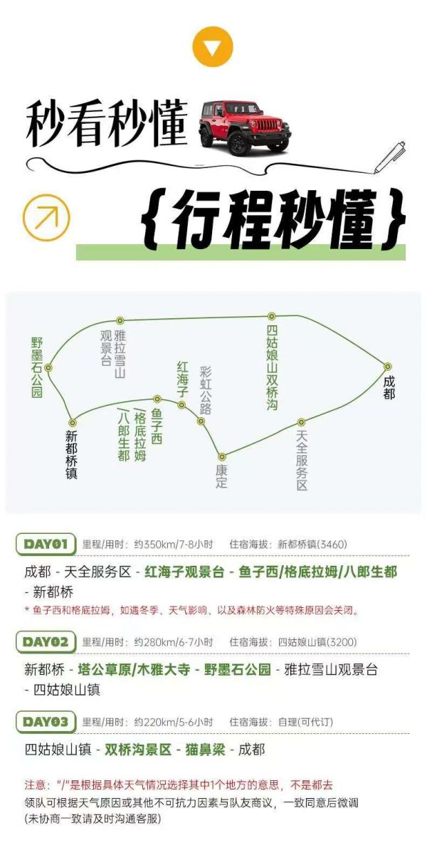 注:4人越野小團(tuán)不會額外收取魚子西/格底拉姆/八郎生都擺渡車費(fèi)用。