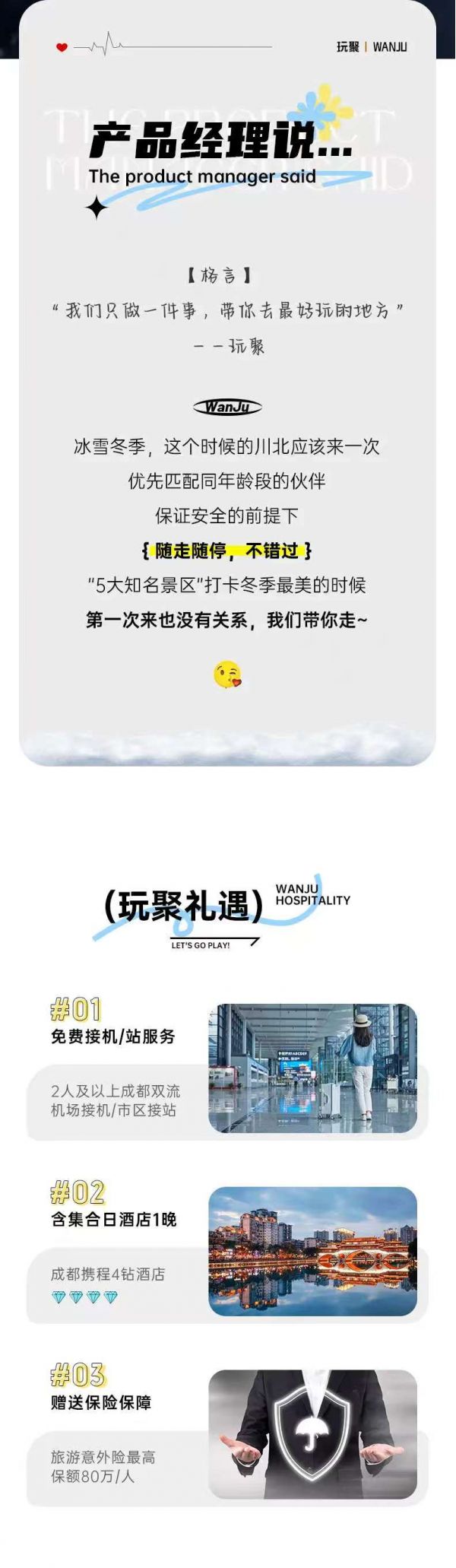 2. 由于川西地區(qū)路況復(fù)雜,山道狹窄,有可能因?yàn)槎萝嚩l(fā)生延誤,請大家盡量預(yù)定第二天返程的航班或車次。