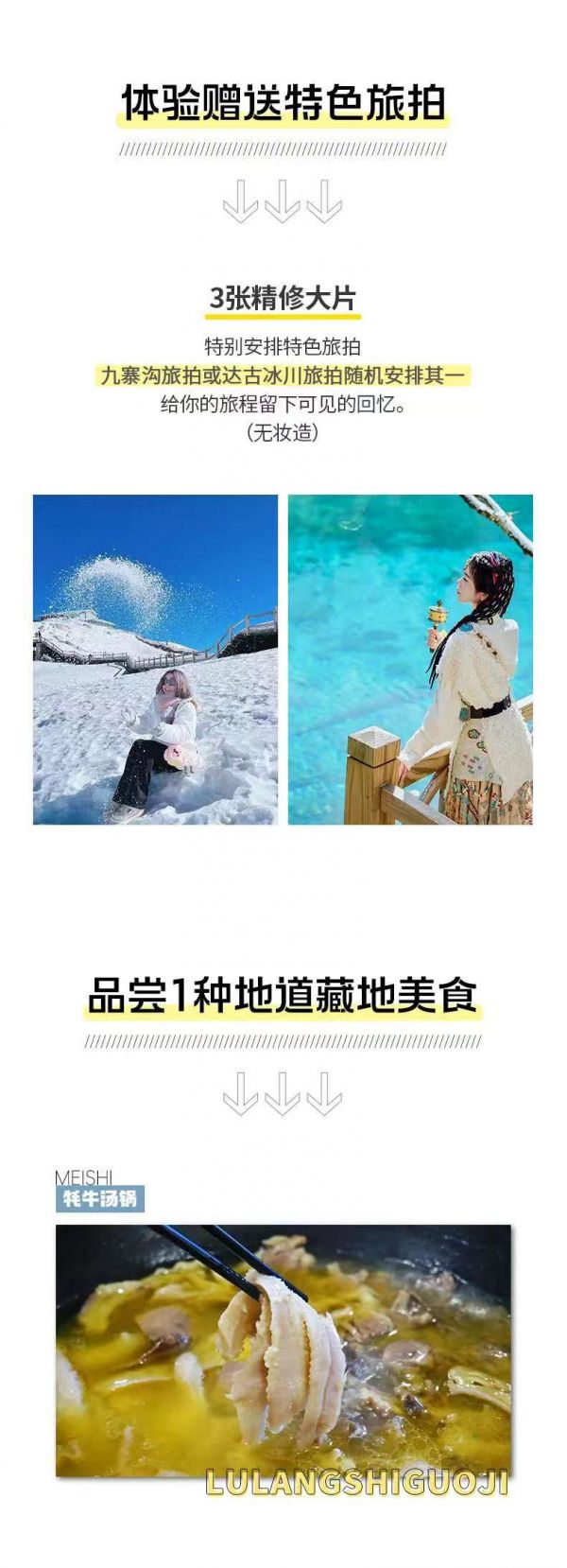 1、黃龍景區(qū)屬于高原氣候,晝夜溫差較大,紫外線強(qiáng),建議攜帶保暖防曬、防寒衣物及防曬、防雨用品等。