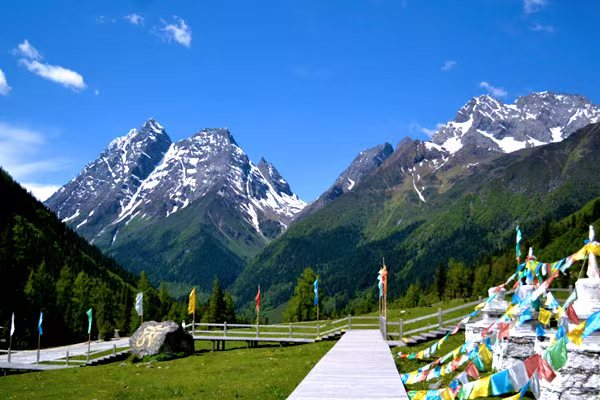 從成都出發(fā),乘車前往畢棚溝,一路上風(fēng)景不斷變換,從城市景觀逐漸過渡到秀麗的自然風(fēng)光。抵達(dá)畢棚溝后,仿佛進(jìn)入了一個(gè)世外桃源。這里有清澈的湖泊,湖水在陽光的照耀下波光粼粼;茂密的森林郁郁蔥蔥,充滿生機(jī);還有巍峨的雪山,山頂終年積雪不化,壯觀無比。您可以乘坐景區(qū)觀光車深入游覽,欣賞沿途美景,也可以選擇徒步,近距離感受大自然的魅力。離開畢棚溝后,前往羊絨哈德,這是一個(gè)寧靜的藏族村落,錯(cuò)落有致的藏式民居,五彩的經(jīng)幡隨風(fēng)飄動(dòng),熱情好客的藏族同胞會(huì)讓您感受到濃郁的民族風(fēng)情。最后抵達(dá)黑水或茂縣,結(jié)束一天的行程,在這座寧靜的小城休息調(diào)整。