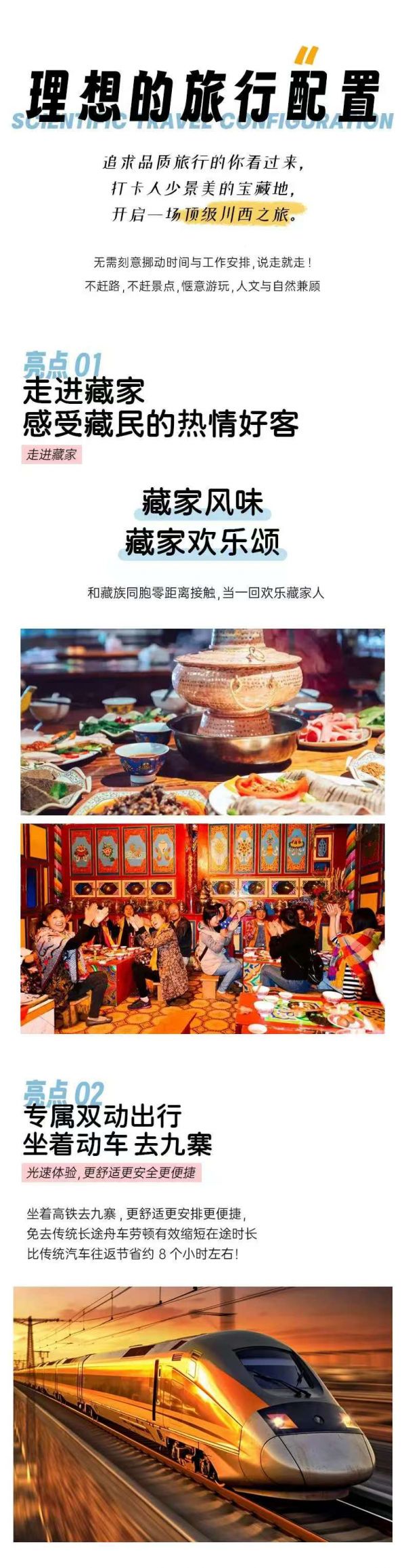 1、產(chǎn)品不含成都高鐵站接送,需根據(jù)實(shí)際出票車次時(shí)間自行提前計(jì)劃好時(shí)間前往成都東站乘車;工作人員會(huì)在出團(tuán)前1天晚 18點(diǎn)-21點(diǎn)左右與您聯(lián)系,下高鐵后工作人員在出站口接站,請(qǐng)保持手機(jī)暢通,注意接聽電話。列車全面實(shí)施電子客票,旅客購(gòu)票、進(jìn)站、乘車均不再提供紙質(zhì)車票,進(jìn)出站時(shí),旅客需憑本人身份證原件通過自助閘機(jī)進(jìn)行驗(yàn)證,辦理進(jìn)出站手續(xù);請(qǐng)游客提前帶好身份證等相關(guān)證件并配合檢查;產(chǎn)品不含成都高鐵站接送,需根據(jù)實(shí)際出票車次時(shí)間自行提前計(jì)劃好時(shí)間前往對(duì)應(yīng)的成都火車站乘車(成都火車站分為火車東站/火車南站/火車西站/火車北站(成都站),請(qǐng)注意核對(duì)旅行社最終發(fā)送給您的車次信息,以免走錯(cuò)站);工作人員會(huì)在出團(tuán)前1天晚 18點(diǎn)-21點(diǎn)左右與您聯(lián)系,下高鐵后工作人員在出站口接站,請(qǐng)保持手機(jī)暢通,注意接聽電話。列車全面實(shí)施電子客票,旅客購(gòu)票、進(jìn)站、乘車均不再提供紙質(zhì)車票,進(jìn)出站時(shí),旅客需憑本人身份證原件通過自助閘機(jī)進(jìn)行驗(yàn)證,辦理進(jìn)出站手續(xù);請(qǐng)游客提前帶好身份證等相關(guān)證件并配合檢查;