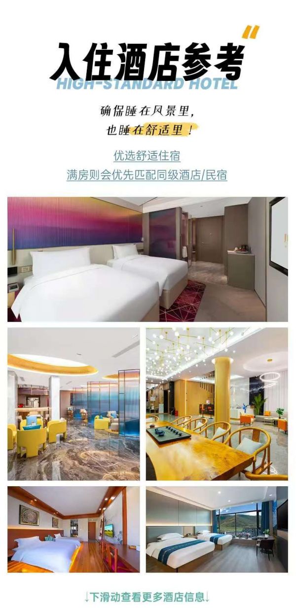 注意:住宿及景區(qū)同樣出示證件!敬請(qǐng)配合旅行社工作!如因個(gè)人原因沒有攜帶有效身份證件造成無(wú)法辦理入住手續(xù)所造成的損失,游客自行承擔(dān)責(zé)任。