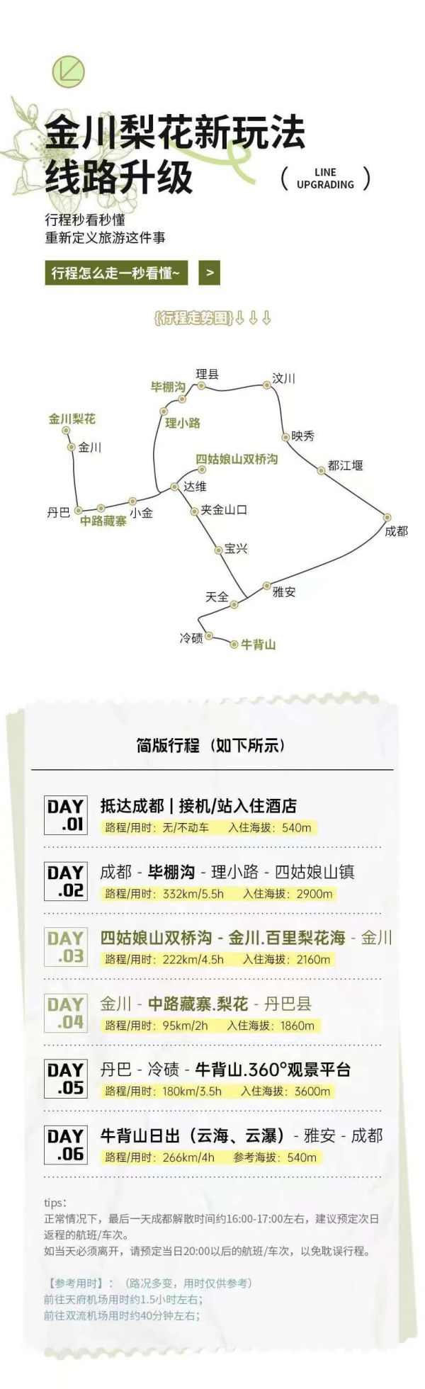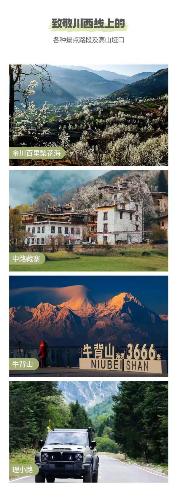 (3)此日行程較長(zhǎng),可能會(huì)稍感枯燥,下午的金川才是我們今日的行程重點(diǎn),所以沿途停車較少,敬請(qǐng)見(jiàn)諒。
