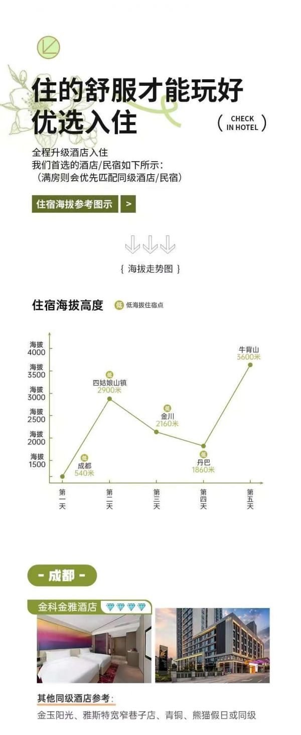 安排1餐特色美食(嘉絨藏餐);含5頓早餐;
