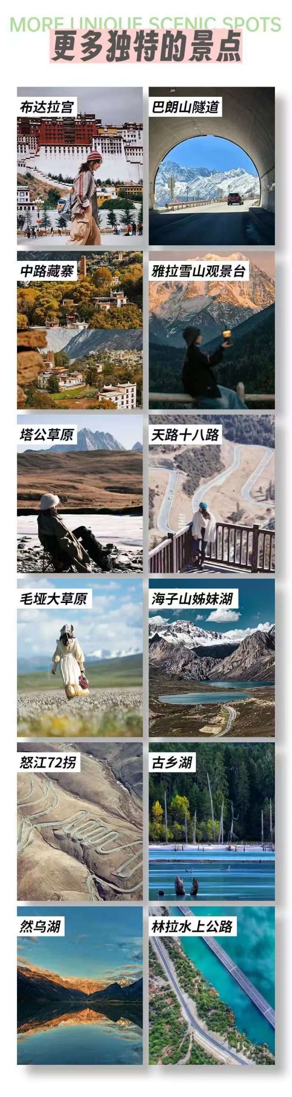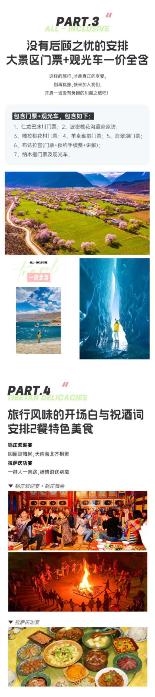 仁龍巴冰川門票、波密桃花溝藏家家訪、嘎拉桃花村門票、秀巴千年古堡門票、布達拉宮(門票+預(yù)約手續(xù)費+講解)、羊卓雍措門票、納木措門票及觀光車、翡翠湖門票