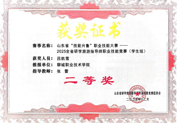山東省“技能興魯”職業(yè)技能大賽—2025年全省研學旅游指導師職業(yè)技能競賽二等獎