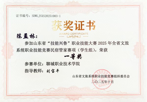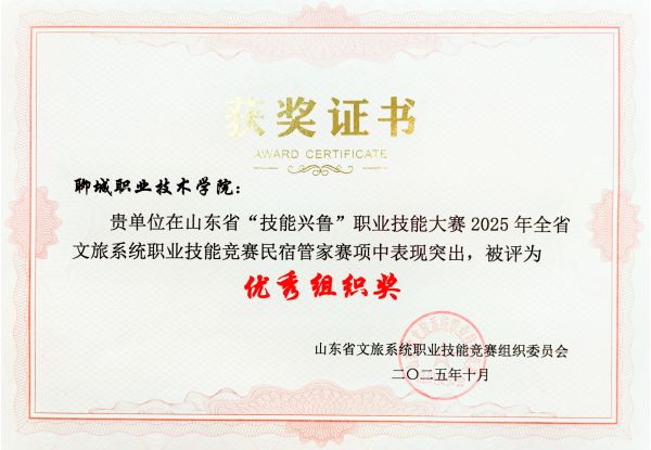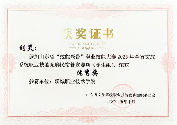 山東省“技能興魯”職業(yè)技能大賽—2025年全省文旅系統(tǒng)職業(yè)技能競賽民宿管家賽項優(yōu)秀獎