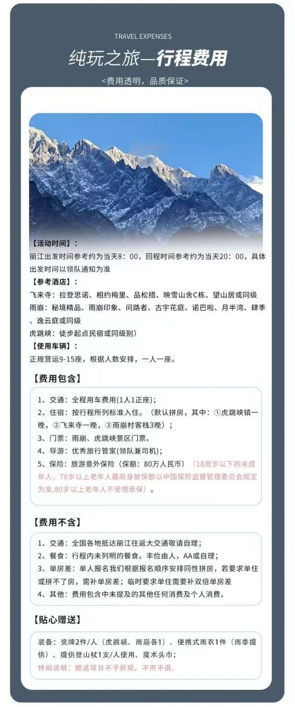 用餐:餐食AA自理 住宿:虎跳峽鎮(zhèn)標間