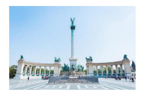 英雄廣場:匈牙利人民為慶祝建國 1000 周年建立了英雄廣場,并在廣場中心豎起一座千年紀念碑。廣場完工于 1896 年,千年紀念碑頂端有一位加百利天使,天使手捧伊斯特萬國王加冕時的王冠,象征著匈牙利由此轉(zhuǎn)為基督教國家。紀念碑的下端是七個騎在馬上的游牧部落首領(lǐng),正是他們在 896 年帶領(lǐng)馬扎爾民族在這里定居,最前面的是阿爾巴德。廣場后方的對稱柱廊建筑上有十四位雕像,他們分別是匈牙利從開國元勛到 1848 年革命期間的,對國家有重要貢獻的國王、領(lǐng)袖及歷史名人。
