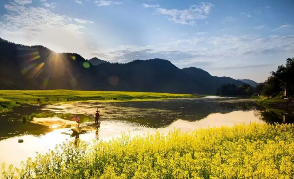 午餐后到達(dá)慶源,慶源村素有小桃園之稱,長期與世隔絕,民風(fēng)淳厚、景色直人,空氣清新不染纖塵,泉水清澈賦含靈氣。油菜花、梨花和桃花同時(shí)監(jiān)開,把慶源人家籠罩在一派“金山、銀海、胭脂云"的最象之中。