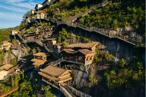 8:30左右到達(dá)木梨硔,由于木梨硔地形獨(dú)特,地處山脊,三面懸空,大概行進(jìn)兩小時(shí),我們到達(dá)最美高山古村落木梨硔。