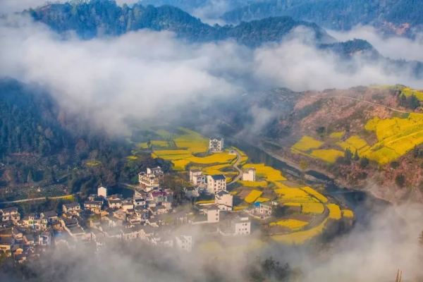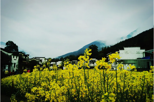 整個(gè)徽州便上演巨型的金黃色油菜花團(tuán)體操...