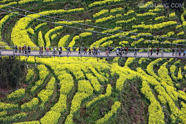 春到篁嶺,周邊千畝梯田簇?fù)恚诺挠筒嘶ǜ傁酄幤G,芳馨誘人,一片黃色的海洋,展示出一幅驚艷的“大地藝術(shù)”美圖。