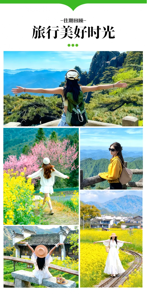 行程結(jié)束當天預計15:30點抵達黃山北站解散,前往黃山屯溪機場可打車(用時約25分鐘),火車/高鐵建議購買16:30以后的車次!飛機建議買16:30以后的航班。